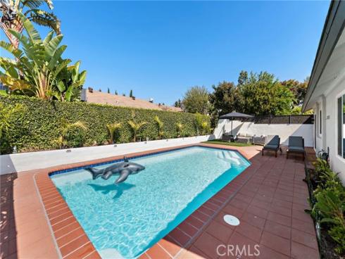 Tucked away in the tranquil Laguna Terrace neighborhood, 22665 Ancona is a thoughtfully updated 3-bedroom, 2-bathroom single-level home that perfectly captures the essence of Southern California indoor-outdoor living. While the home spans 1,120 square feet, it lives like 3,000 thanks to a brilliantly designed open floor plan and a seamless transition between interior spaces and the expansive outdoor setting, taking full advantage of the generous lot. Inside, the upgraded kitchen features custom cabinetry, Tuscany cream stone countertops, stainless steel appliances, and flows effortlessly into a bright, open living area with a stacked stone fireplace, crown molding, and recessed lighting. Oversized sliding doors extend the living space into a backyard oasis that feels like a boutique resort, complete with a private in-ground pool, swaying palm trees, and low-maintenance landscaping that make entertaining or relaxing feel like a getaway. Both bathrooms have been tastefully remodeled with travertine showers and stone surfaces, underscoring the home’s attention to detail and quality. Recent upgrades include a new electrical panel, new roof, fresh interior and exterior paint, new appliances, and a smart home system with app-controlled lighting and thermostat. The home also features a roof-mounted whole-house fan, dual-pane windows, and a newer HVAC system for maximum energy efficiency and comfort. Located on a quiet cul-de-sac just steps from San Remo Park and only minutes from top-rated schools, dining, and shopping, 22665 Ancona delivers an exceptional blend of comfort, sophistication, and the elevated indoor-outdoor lifestyle that defines life in Laguna Hills.