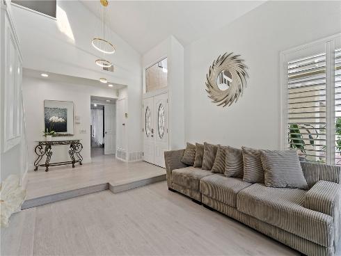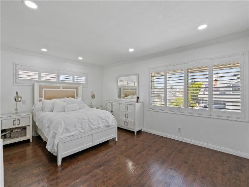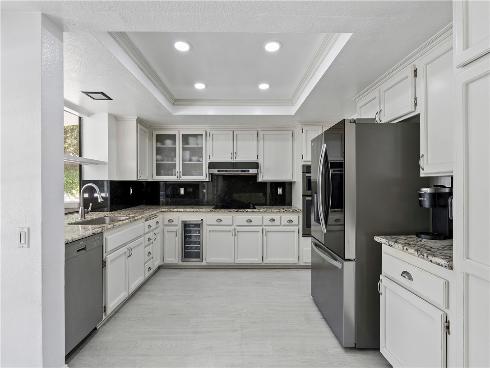 Reduced Price! Elegant 6-Bedroom Home in Prime Location. Located in a sought-after neighborhood, this beautifully maintained 6-bedroom, 3-bathroom home features a stunning tiled front entry and a grand two-story foyer. The open-concept layout includes formal living and dining areas, a cozy fireplace remodeled with tile, and a wet bar—ideal for entertaining. The updated kitchen offers granite countertops and stainless steel appliances, three French doors lead to a private backyard retreat with a tile-accented Jacuzzi, built-in BBQ, and fire pit. Downstairs, there is a versatile bedroom/office and a remodeled full bath. The upstairs has a spacious primary suite that boasts vaulted ceilings, a dual vanity, a walk-in closet, and a soaking tub. A second remodeled bathroom completes the upper level. Close to parks, top-rated schools, shopping, dining, and freeway access. Refrigerator, washer, and dryer included.