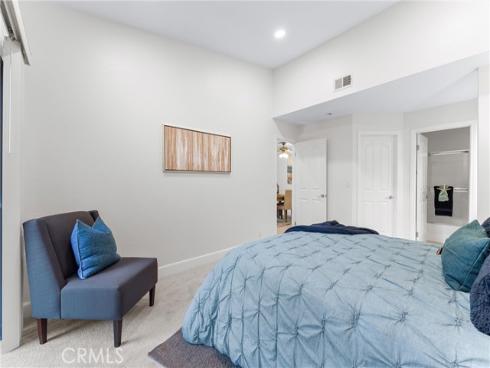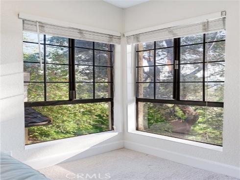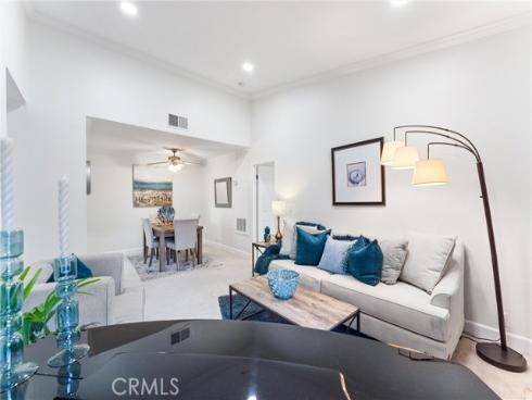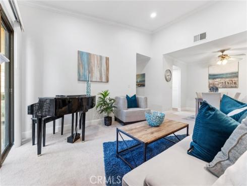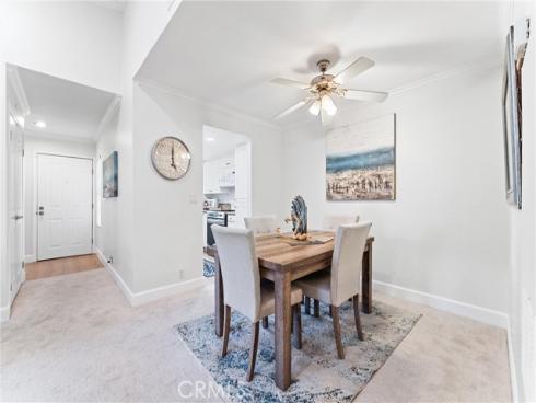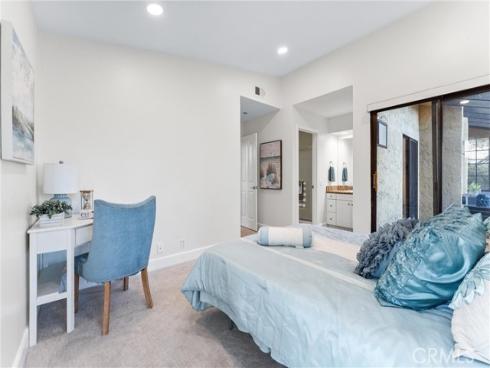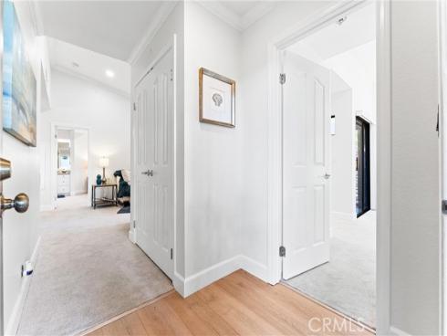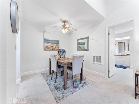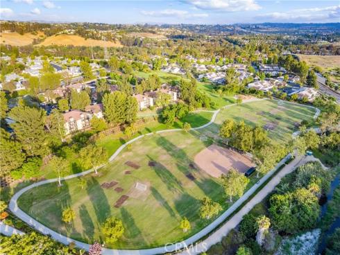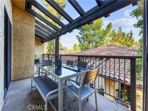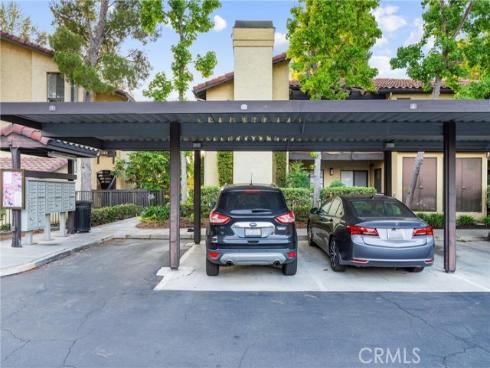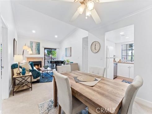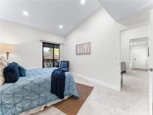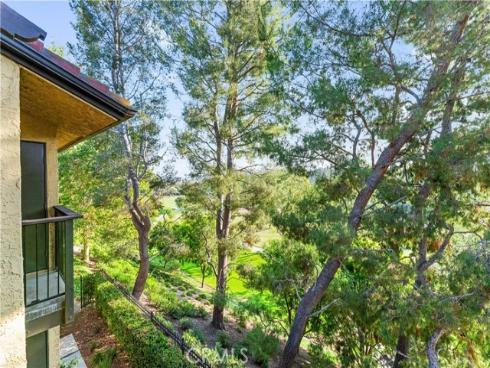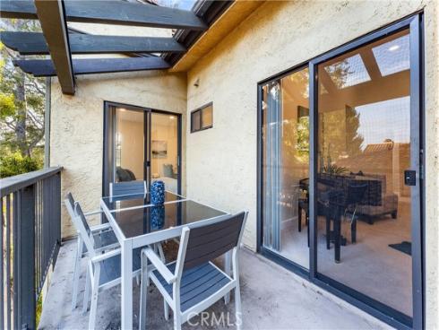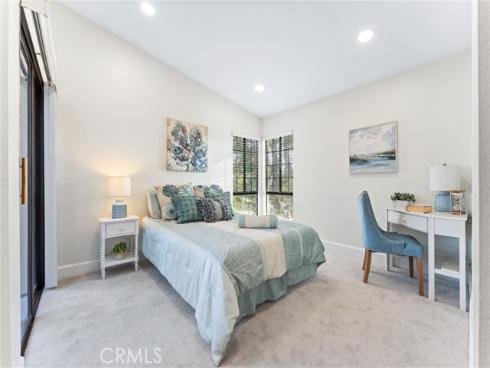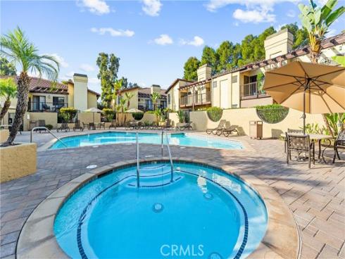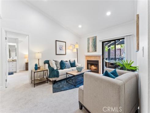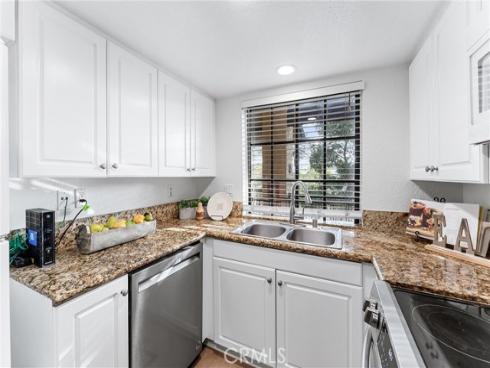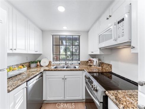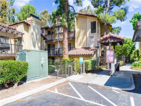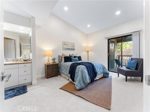 Welcome to Bella Tierra Living—Top Floor, Turn-Key, and Full of Light! Tucked inside the gated community of Bella Tierra, this beautifully upgraded top-floor condo is a rare find that perfectly blends comfort, convenience, and charm. Soaring vaulted ceilings and abundant natural light set the tone from the moment you enter. This spacious 2-bedroom, 2-bath home offers ideal privacy with dual en-suite bedrooms, each with its own generous walk-in closet. The freshly painted interior, designer crown molding, and new luxury vinyl flooring in the entry welcome you in style, while the brand new designer carpet adds a plush touch to the living space. The updated kitchen and bathrooms feature crisp white cabinetry and elegant granite countertops, and both bathrooms are finished with classic tile flooring. Step outside to your private balcony, where you can enjoy peaceful park and city light views—even catch the Fourth of July fireworks from your own home! Enjoy the convenience of a full-size washer and dryer (included!) tucked into the private balcony laundry closet, plus a separate storage room and an assigned covered carport (#2) located conveniently near the mailboxes. The Bella Tierra community offers resort-style amenities including a pool, spa, fitness center, and clubhouse for your gatherings. Each building features a secure bike room—perfect for your active lifestyle. Located just steps from Sheep Hills Park, scenic Aliso Creek trails, Laguna Hills Community Center, and moments to shopping, dining, Laguna Hills High School, and the mall—this location is as convenient as it is serene.