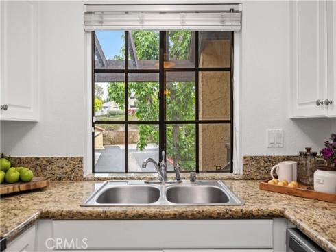 Stunning, Move-in Ready Corner-unit Home with Privacy, Located in a Quiet Area of the Gated Bella Tierra Community. This gorgeous 2-bedroom, 2-bath condo features a newer A/C and heating system, water heater, and garbage disposal—plus fresh paint, brand-new carpet, luxury vinyl plank flooring, tall baseboards, crown molding, and recessed lighting throughout. This unit features an extra private outdoor storage room conveniently located next to the entrance. The inviting living room offers high ceilings and a cozy fireplace, seamlessly flowing into the dining area and kitchen—ideal for entertaining. The bright kitchen boasts granite countertops, white cabinetry, and a window with a peaceful view. Both en-suite bedrooms are generously sized with walk-in closets and high ceilings. Sliding doors from the living room and both bedrooms open to a large, covered balcony—perfect for relaxing or entertaining. A laundry closet with extra storage is also located on the balcony. The unit includes a reserved covered parking space with easy access, plus an option for a second parking space through an HOA permit. Bella Tierra residents enjoy fantastic amenities, including a pool, spa, recreation center, gym, and bike storage room. HOA dues include water and trash. Conveniently located near top-rated schools, parks, trails, Aliso Viejo Town Center, and major highways.
