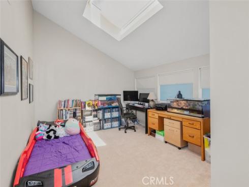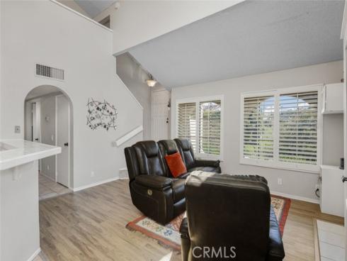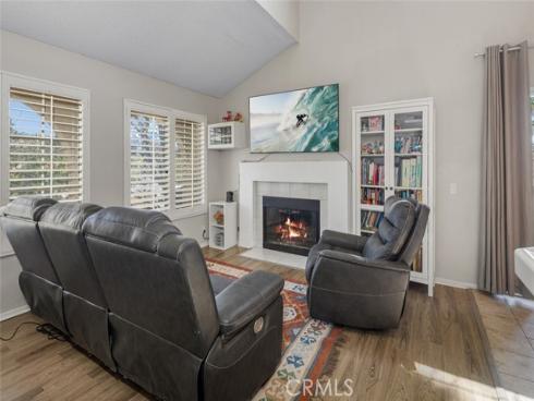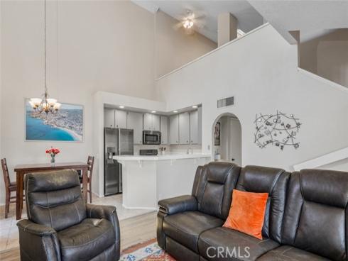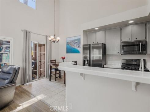 Great opportunity to own a two-bedroom townhome with an ideal Laguna Hills location in the Briosa community. This home has a 2nd Level Entry, with two stories of living area. The entry level offers an Open Floorplan including a light and bright kitchen with stainless steel refrigerator, a dining area with high ceilings and a large living room adorned with a gas log fireplace. Slider door in the dining room opens to a generously sized private patio—ideal for morning coffee or dining al fresco. One bedroom with a Full Bathroom are located on the main level, along with a laundry room. Upstairs, you'll find a spacious loft that can easily serve as the second bedroom, home office, or cozy media room. There is an abundance of natural light throughout this home from the numerous windows and skylight. Additional home upgrade is full PEX repipe that was completed throughout the community. Parking is a breeze with one assigned covered parking as well as one additional permit parking space. The Briosa community feels like a tropical oasis with so many tall Palm Trees, a Community Pool with a Spa plus a playground and sports court. This home is ideally situated near popular shopping centers and provides easy access to Tollway 73, making for a convenient commute. Whether you’re a first-time buyer, downsizing, or seeking a smart investment, this condo is a must-see!