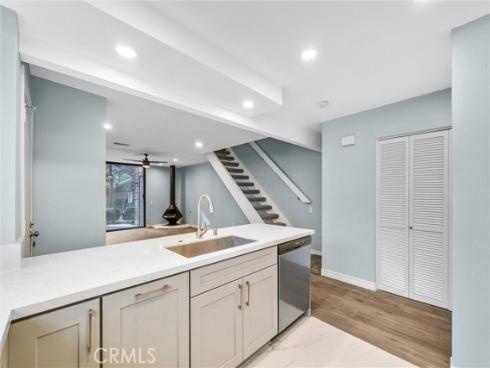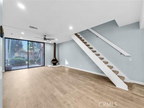 Welcome to this charming 1-bedroom & 2nd Bonus room- 2-bath home in the heart of Laguna Hills, featuring a spacious open floor plan and stylish textured flooring. As you enter, you’re greeted by a dining area and kitchen that seamlessly flow into the cozy and versatile family room. The kitchen offers generous cabinet space, ceiling fans, making it perfect for cooking and entertaining. From the family room, step onto the scenic patio to enjoy views of serene running creeks and ponds. The staircase leads to the upstairs bedrooms, where you'll find the master bedroom with vaulted ceilings, an ensuite bath, walkin closet, along with a second bedroom and a conveniently located hall bath. The home also boasts practical storage closets, adding flexibility to the layout. Additional features include in-unit laundry, updated flooring, fresh paint throughout, and a designated 2-car garage equipped with storage cabinets. Residents enjoy resort-style amenities such as two pools, spas, tennis courts, EV charging stations, scenic running creeks, ponds, and ample guest parking.The HOA covers many utilities, including water, trash, gas, as well as roof and siding maintenance. Conveniently located just 8 miles from the beach and near the I-5 and 73 Toll Road, this home is close to top-rated schools and local shopping. It offers the perfect blend of comfort, style, and convenience. Take this opportunity to make it your own!