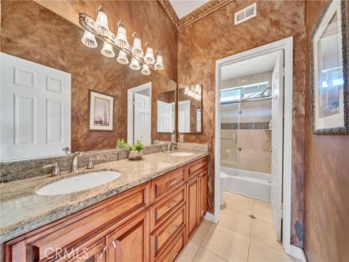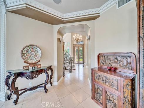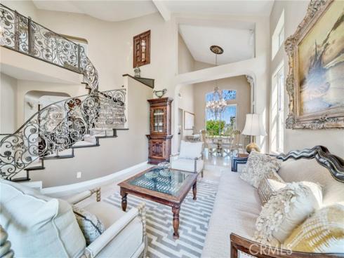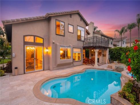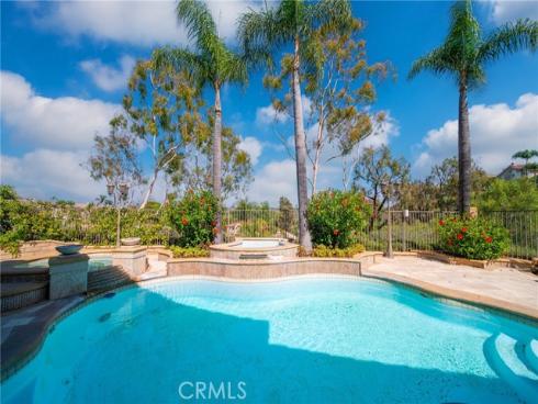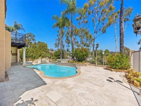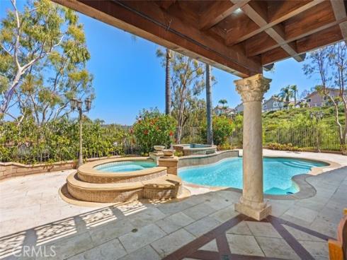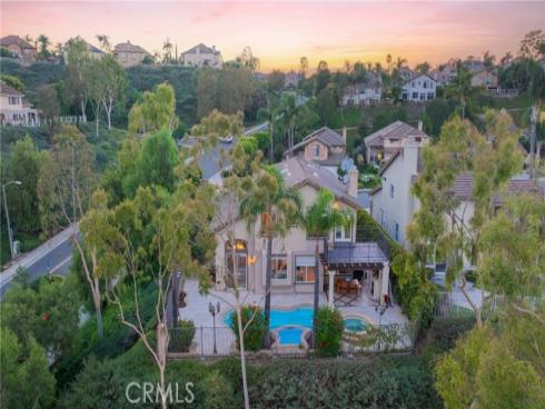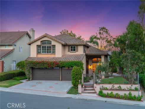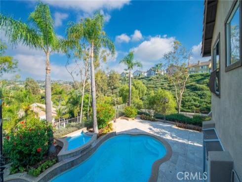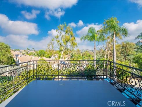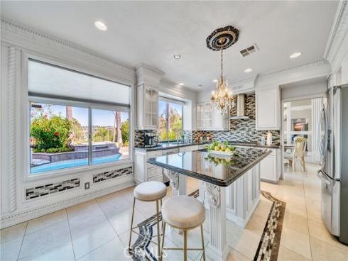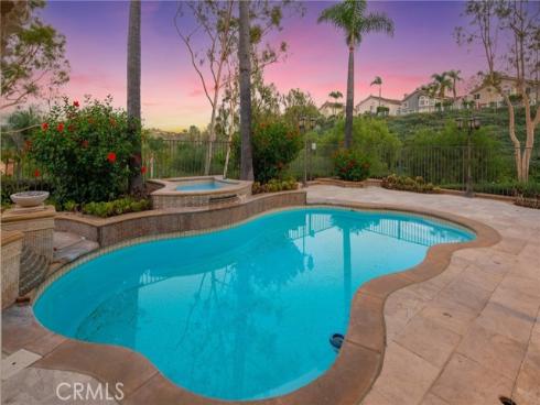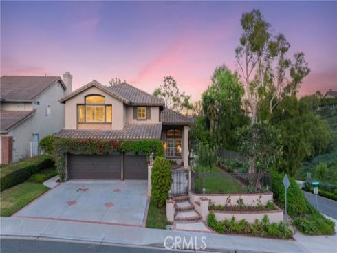 Set on a premium 10,000+ sq ft lot, this beautifully maintained home offers stunning 180-degree views of mountains, hills, and twinkling city lights. With nearly 2,800 sq ft of living space, the home includes 4 bedrooms, 3 bathrooms, and a spacious bonus/media room. The grand entry features marble flooring with a granite medallion, leading to open living areas perfect for entertaining. The chef’s kitchen boasts granite countertops, a large center island, and stainless steel KitchenAid appliances—oven, cooktop, refrigerator, microwave, and trash compactor. The primary suite includes a private balcony to enjoy the view, while the ensuite bath showcases dual granite vanities, marble floors with insets, and elegant finishes. A main-floor bedroom provides flexible living options, and the secondary baths feature granite counters, marble floors, and full-height marble walls. Upgrades include custom woodwork, crown molding, a surround sound system, and stunning wrought iron details on the front doors, staircase, and accents throughout. The gated front yard features brickwork, roses, fruit trees, and vibrant landscaping. The 3-car garage offers custom cabinetry and upgraded doors with etched glass. The backyard is a private oasis with a pool and spa, outdoor fireplace, and an outdoor shower—perfect for enjoying the California lifestyle in Moulton Ranch.