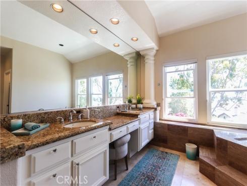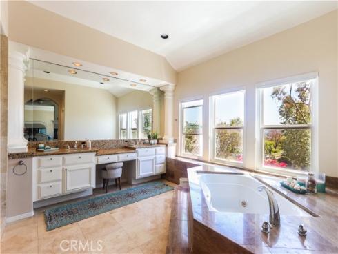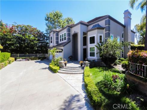 "TOTAL PRICE REDUCTION" Nestled in a quiet cul-de-sac , this Stunning privately gated property offers privacy, luxury and breathtaking views. From its elevated position, the home captures sweeping vistas of city lights at night and majestic mountains by day. Flooded with natural light, every room in this house feels warm and inviting. As you enter , the large office/ library with its French doors offers a secluded space away from the main family area. You step down into a formal living room with vaulted 20’ ceilings centered with a fireplace that showcases an impressively tall mirror above its mantle. The room also features a modern metal and glass elevator with convenient access to the second floor, in addition to the beautiful spiral staircase. Arched entryway and classic columns guide you into a light and airy dining room with big windows and entrance into a side yard with lush plant and a waterfall to enjoy a relaxing moment after dinner. All flooring downstairs except the kitchen, is a faux-wood stone material that combines the warmth of wood and the durability and ease of maintenance of stone. The kitchen is open to the family room, it has a center island with bay windows the spacious family room has a fireplace to enjoy on chilly nights and it also leads you into the serene backyard with flowering plants and fruit trees that provides an oasis of calm and beauty. The thoughtful layout of this residence includes a first floor bedroom with en-suite bathroom for guests or multigenerational living. Upstairs the luxurious primary bedroom with wall to wall windows opens into a beautiful sitting area with a fireplace, sunken jetted bathtub, stand alone shower and two walk-in closets. Three more bedrooms and two bathrooms complete the second level , along with a bonus area that has versatile uses. The exterior is freshly painted , interior has newish custom paint and designer wallpaper, newer energy Efficient double paned windows with custom shades. Located in the highly sought after community of Moulton Ranch , this home is minutes from top-rated schools, shopping, dining and beautiful beaches. Neighborhood community park is within walking distance. Come experience the elegance , comfort and convenience of one of the area’s most desirable neighborhoods