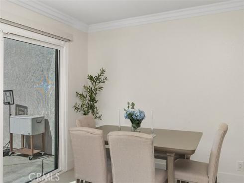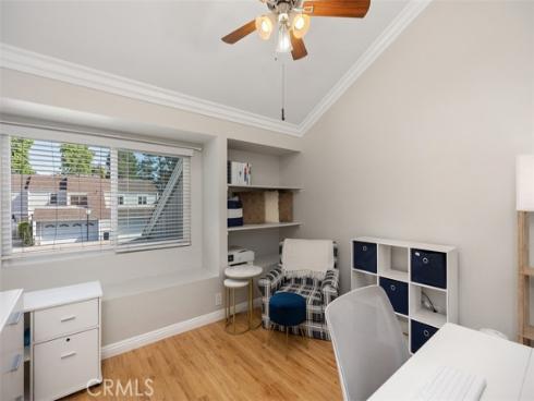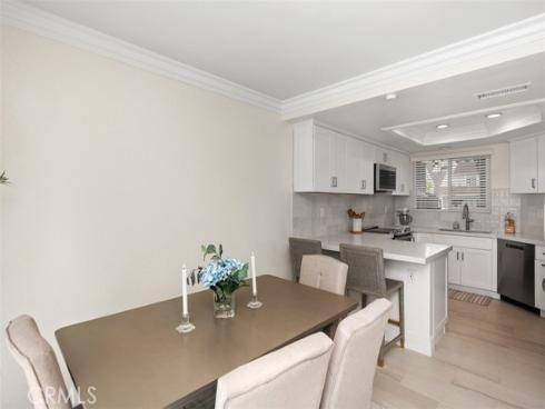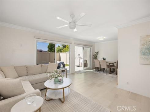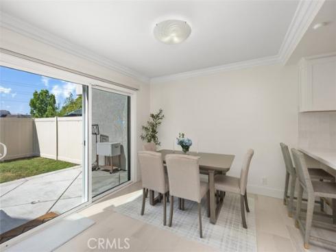This beautifully updated single-family attached home is ideally situated in the sought-after and well-maintained Indian Hill community in the city of Laguna Hills. Conveniently located near the Laguna Hills Community Center, Sheep Hill Park, shopping, dining, and local schools, this home sits on a cul-de-sac with a greenbelt backdrop and a enclosed backyard. Approach the property through the private, landscaped gated courtyard, creating a perfect first impression. Step inside to discover a newly tiled entry that opens to a light-filled interior featuring crown molding, dual-pane windows. The open floor plan provides a welcoming and functional living space that’s filled with light. A spacious living room that connects seamlessly to the dining area and kitchen. Two sliding doors provide direct access to the backyard and patio, making it ideal for indoor-outdoor living and entertaining. The updated kitchen dazzles with sleek countertops, a brand-new stove and dishwasher, recessed lighting, classic white Shaker cabinetry, and a breakfast bar perfect for casual dining. Ascending the naturally lit staircase, you’ll find the bedroom level, where wood laminate flooring and crown molding continue throughout. The upper landing also includes linen cupboards for additional storage. The serene master suite features high vaulted ceilings, picturesque views of Sheep Hills Park, two mirrored closets, and a spa-inspired ensuite bath complete with white Shaker cabinetry, updated faucets, and modern vanity lighting. The home has received numerous upgrades, including a Whole House Re-Pipe, new AC, new toilets, new shower heads, all California water compliant. Outside, the spacious backyard serves as a private oasis with a large patio and lawn, perfect for barbecues and relaxing moments with family and friends. The Indian Hill community is conveniently located next to the family-friendly Sheep Hills Park, which offers a playground, playing fields, picnic areas, and walking and biking trails. Residents also enjoy easy access to the Laguna Hills Community Center, Dinosaur Park, sports fields, an events center, and a skate park. For those seeking outdoor adventures, nearby biking and hiking trails lead through Aliso & Wood Canyon Wilderness Park and Aliso Creek, extending all the way to the ocean.