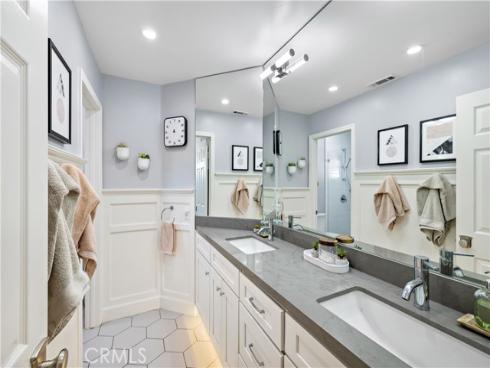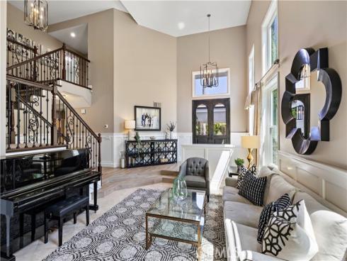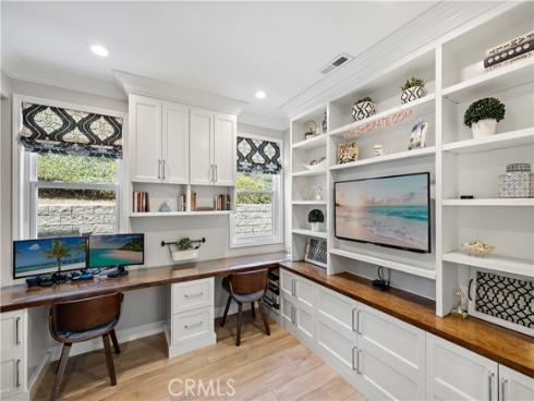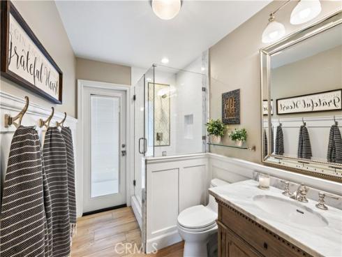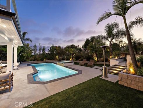 Listed between $2,500,000-$2,700,000!! Tucked inside the gated coastal enclave of Bear Brand Ridge, this beautifully renovated cul-de-sac home blends luxury, comfort, and functionality at every turn. This turnkey residence is ready for you to move right in and enjoy! Thoughtfully upgraded throughout, the home offers a flexible floor plan ideal for modern living and entertaining. The main level features European wood-look tile flooring, elegant five-piece wainscoting, and an open-concept layout that seamlessly connects the bright living and dining areas to the chef’s kitchen. Designed for both style and function, the kitchen offers custom cabinetry, generous storage, a casual breakfast nook, and center island that opens to the inviting family room with a cozy fireplace—perfect for cooler Southern California nights. A spacious first-floor office/bedroom offers flexibility and features custom built-ins and a Murphy bed, making it perfect for guests or work-from-home living. It’s conveniently located next to a fully remodeled bathroom with a Restoration Hardware vanity and marble inlay shower for a sleek, spa-inspired finish. The fully renovated laundry room features ceiling-reaching cabinetry and designer tile. Upstairs, the primary suite opens to a private deck with peaceful sunset views. The ensuite bath includes a stunning marble accent wall, custom vanity, and luxurious Kohler fixtures. Two additional bedrooms and a versatile bonus room with a tongue and groove ceiling complete the upper level. Step outside to your own resort-style backyard. A resurfaced saltwater pool, new hardscaping, lush landscaping, and ambient lighting set the stage for unforgettable evenings. A built-in fire pit creates a cozy gathering space, and a newly installed putting green offers the perfect escape for golf enthusiasts. Additional highlights include a new AC unit, custom closets throughout, and proximity to award-winning schools including St. Anne and St. Edward. Enjoy easy access to world-renowned surf breaks, scenic coastal trails, and abundant outdoor recreation. Just beyond the gates, Ocean Ranch Plaza offers a curated mix of shops, restaurants, and entertainment—all just minutes from your doorstep.