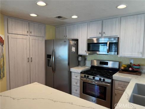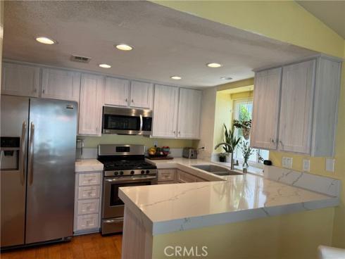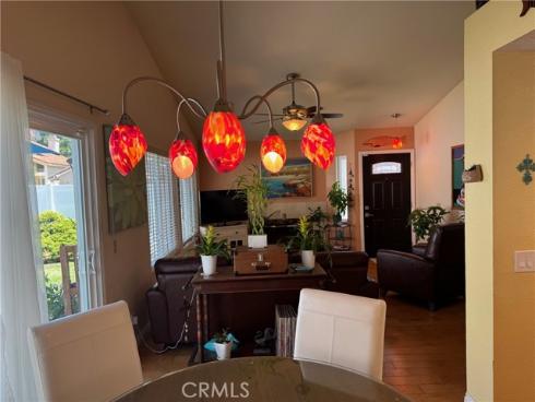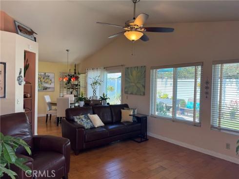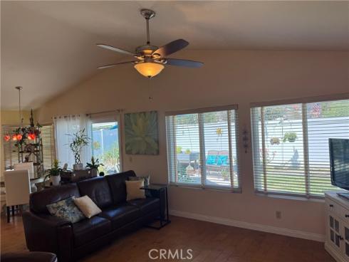 Charming SINGLE-LEVEL House on a CORNER LOT – 2 Bed, 2 Bath, 2-Car Garage! Don’t miss this rare opportunity! This beautiful single-family residence sits on a spacious corner lot and features 2 bedrooms, 2 bathrooms, and an attached 2-car garage. With a wraparound yard, low HOA under $100/month, and NO Mello-Roos, this house offers both comfort and value in a desirable neighborhood. Step inside to a welcoming living room with a cozy fireplace, seamlessly connected to the dining area. A decorative chandelier adds charm and elegance, while the updated windows and blinds bring in abundant natural light. The remodeled kitchen is a true highlight – featuring upgraded cabinetry with soft-close doors and drawers, new countertops, and modern appliances. Designed for entertaining, the kitchen, dining, and living spaces all flow out to the private wraparound yard through a sliding glass door, creating an ideal indoor-outdoor lifestyle. Enjoy wall-to-wall windows offering views of the landscaped yard, enclosed with new vinyl fencing for added privacy. Down the hall, you’ll find ample storage with linen and coat closets, a spacious primary suite with en-suite bathroom, and a comfortable secondary bedroom with easy access to the second full bath. At the end of the hall is direct access to an oversized 2-car garage – perfect for extra storage or a workshop space.This home combines charm, function, and thoughtful upgrades throughout. Properties like this do not come up often! In close proximity to parks, tennis, shopping, dining and much more. Don't miss the opportunity to see this gem.