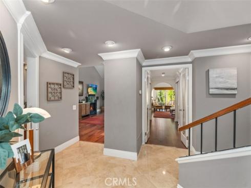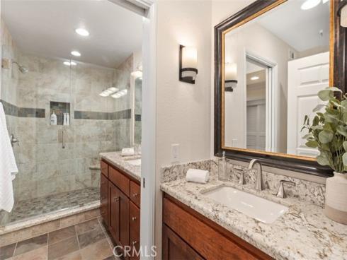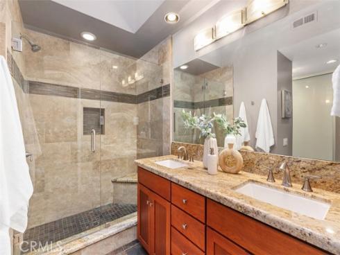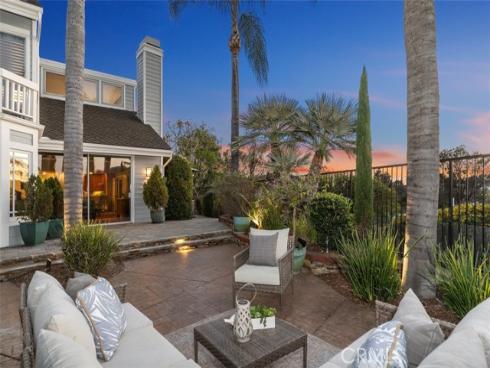 Welcome to 3 Parkman in coveted Beacon Hill Court with sweeping views and incredible corner lot. Situated in a desirable location at the end of the cul de sac, this property can live like a one story home because it has a huge primary bedroom on the main floor plus full bath that was totally renovated within the last 3 years. This room also was added onto for additional space plus another closet. The gated courtyard is bright and cheerful which leads you into the home. Impressive wrap around yard with beautiful hardscape & landscaping with various areas to sit and enjoy the views and entertain. Decomposed granite in the front & side courtyards plus pavers and new lighting & sprinkler system with new timers. The living room exudes sophistication with its beautiful wood flooring and a stunning fireplace, creating a cozy ambiance. In the kitchen, you'll find new cabinets, new granite countertops, & new backsplash and has upgraded lighting and beautiful wainscoting. The kitchen is open to the living room with bar seating or in the kitchen nook. Upstairs there is a large loft with tons of natural light but also has shutters installed for privacy. The loft is versatile and can be used as an office, upstairs TV/family room, gym, playroom and more and has a new wire railing to add to the openness and beauty. The upstairs primary bedroom features an all-new bathroom with a skylight. A sliding door out to the deck with serene views is an added perk of the upstairs bedroom. The garage has a new opener and remotes and has a large pitch in it for excellent storage capabilities. Infrastructure upgrades include a 35-year sloped roof and 30-year new flat roof, Trane AC condenser installed within the last 5 years, new insulation in attic, new hot water heater, and entire home painted on the interior within the last 5 years. Beacon Hill amenities include 6 lighted tennis courts and 3 pools/spas. Award winning schools, plus access to excellent local beaches, restaurants, trails, and 5 star resorts.