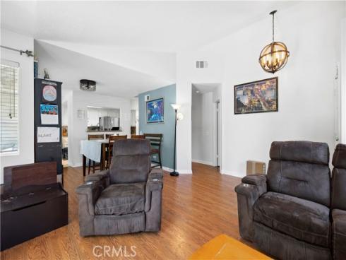 Charming Single-Story Home in Sought-After Serrano Highlands, Lake Forest. Welcome to this beautifully maintained single-level home in the desirable Serrano Highlands community of Lake Forest. With a spacious, open-concept layout and vaulted ceilings, this home offers a warm and inviting atmosphere throughout. Freshly repainted inside, it features great natural light, and well-placed ceiling fans and light fixtures that enhance the airy feel of the space. The living room, dining area, and kitchen nook flow seamlessly together—leading out to a private balcony, perfect for morning coffee or evening gatherings. The kitchen has a functional layout with ample cabinet space, ideal for both everyday living and entertaining. The generously sized primary suite includes a walk-in closet and en-suite bathroom, creating a peaceful retreat. Two additional bedrooms offer flexible living space—one with its own walk-in closet—along with a full hallway bathroom and a convenient indoor laundry room with extra storage. A rare and practical bonus is the pull-down attic ladder leading to a large attic—perfect for seasonal storage or keeping things organized. This well-designed home lives larger than its square footage suggests and is part of a beautifully maintained HOA community offering resort-style amenities including a pool, spa, tennis courts, pickleball, basketball, plus landscaping and trash service. Serrano Highlands is part of the vibrant Lake Forest community—known for its excellent schools, scenic parks and trails, and newly developed sports and recreation facilities. Move-in ready, this gem offers comfort, convenience, and community. Don’t miss your chance to make it yours!