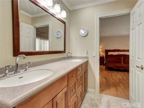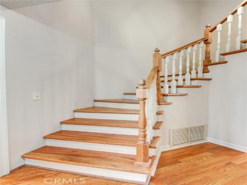 First time on the market in over 40 years! This exceptionally maintained townhome features 3 bedrooms and 2.5 baths with an open floorplan that's perfect for today's lifestyle. The property is located in a peaceful community of just 122 homes right in the heart of Lake Forest, nestled in a private corner of the neighborhood, just steps away from the community pool, spa, and recreation area. A private gated courtyard entry welcomes you into the home. As you enter, the kitchen and casual dining area are off to the right. The kitchen has been upgraded with granite counters, custom solid cherry wood cabinetry, Grohe fixtures, and stainless-steel appliances. On the other side of the kitchen is a formal dining room, which leads to a spacious living/family room area. The family room features a cozy brick fireplace with a handmade wood mantle, custom built-in shelves, plantation shutters, and wood flooring throughout. Downstairs you will also find a separate half bath for guests, along with a spacious enclosed indoor laundry room, which leads directly to your 2-car attached garage. Enjoy evenings outdoors in your private and spacious back patio, enclosed with vinyl fencing and custom hardscape. As you walk upstairs to the 2nd level, you will notice custom-built wooden stairs and handrails. The two secondary bedrooms are located on one side of the hall, along with the full bathroom which has been upgraded with custom tile and glass shower door. The spacious principal suite is located on the other side of the hallway, which features an upgraded bathroom and walk-in closet. Other features of this beautiful home include a whole-house fan, all newer Renaissance windows and solid mahogany leaded glass front and beveled glass patio doors, recently-upgraded PEX piping throughout, newly-installed A/C and water heater, and a custom-built cedar lined window seat for storage in the upstairs hallway. This home has been very well cared for, and it shows!