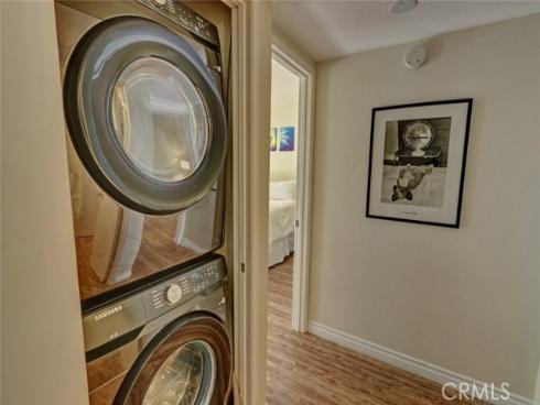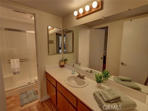 Beautiful ground level 2 bdrm, 2 bath end unit in Le Parc with an extra large sunny wraparound patio and yard - perfect for entertaining, dining alfresco, giving your pet space or having a garden!. Having two bedrooms with attached baths offer many options for guests, roommates or investment value. The living and dining rooms plus kitchen create an open concept living area. The living room has a cozy fireplace and direct access to the enclosed patio area transitioning indoor / outdoor space. The primary bedroom also has direct access to the private patio area. An indoor laundry with newer stackable washer and dryer is conveniently located at hallway. There is solid surface flooring (wood laminate and tile) throughout. Finally, an oversized two car garage ensures covered parking and offers extra storage space. The resort style grounds include pools, spas, water features and a clubhouse. There is also a public park a short walk away with open space and play equipment. Don’t forget about the large side yard - great for garden, dog run or play area!