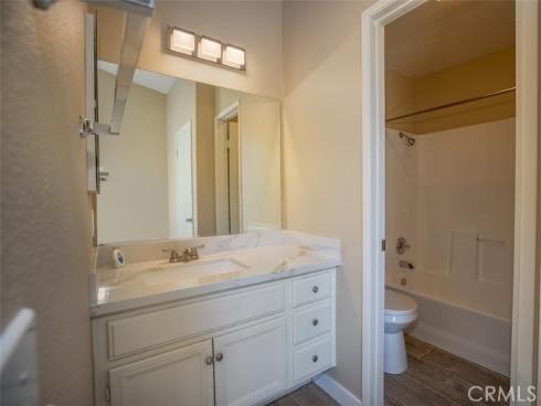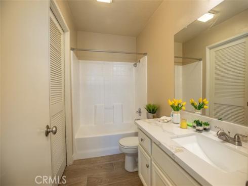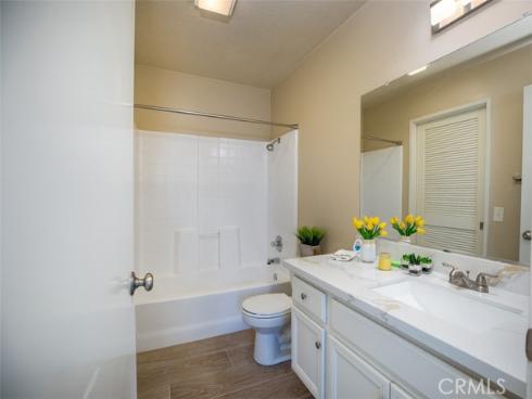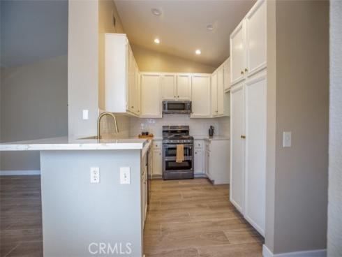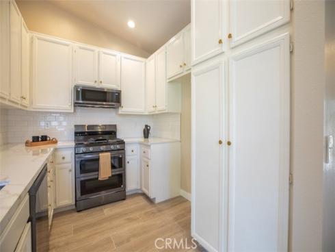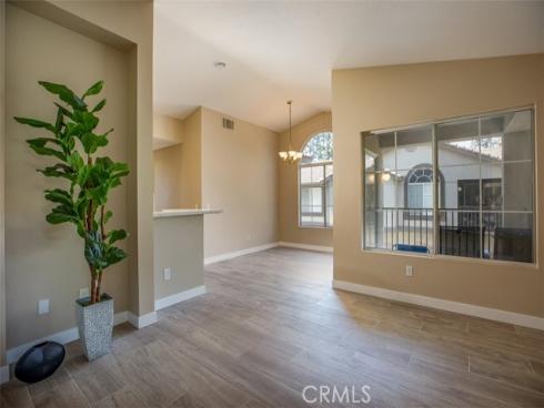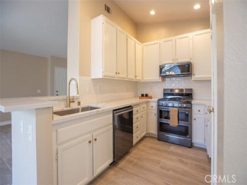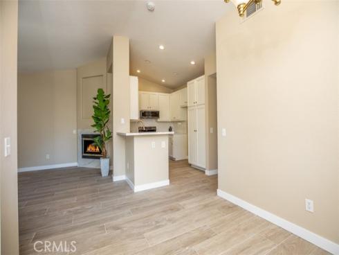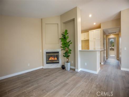 Luxury one story two bedroom 2 bath condo inside the private Salerno community of Foothill Ranch. Large windows allow for an abundance of natural light. New paint, baseboards and wood-look porcelain tile flooring throughout, no carpet. New Quartz kitchen counters, sink, fixtures, backsplash and black stainless appliances. New quartz bathroom counters and fixtures. New LED lighting throughout. New toilets and all angle stops new, Deck for indoor/outdoor dining. Fireplace redone. Indoor laundry room. Single car garage included, below primary bedroom. Amenities include a pool and spa with bbq. Parks close by. Easy access to the 5 & 405 fwys, 241 Toll Road, and minutes away from the Foothill Ranch Shopping Center, Irvine Spectrum, Great Park, and hiking/biking trails. Upstairs unit has no unit below, only garages. HOA maintains streets, staircase, decks & landings, roof, & exterior paint.