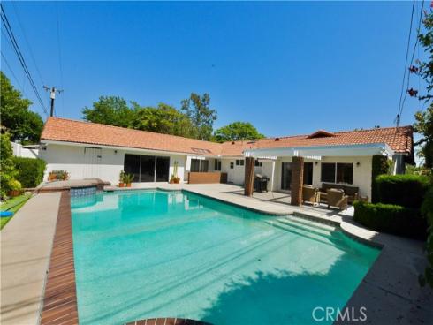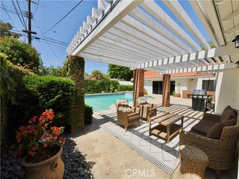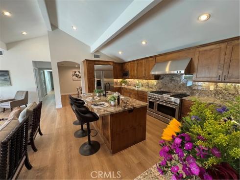 Welcome to this breathtakingly renovated Rossmoor gem, situated on a prime corner lot with easy access to shopping and part of the top-rated Los Alamitos School District. Thoughtfully designed for both comfort and style, this home boasts an open floor plan and an inviting backyard, perfect for indoor/outdoor entertainment and dining. Throughout this 4-bedroom, 3-bathroom house, modern upgrades enhance the living experience. Enjoy high beamed ceilings, all-new luxury vinyl flooring, and recessed LED lighting. The gourmet kitchen is a chef’s dream, featuring a 48-inch double-oven range with 6 burners, a new built-in microwave, upgraded sink fixtures, and stylish cabinet hardware. The grand pool, with direct bathroom access, is the perfect spot for pool parties. The spacious primary bedroom has a custom-built-in closet system and direct access to the backyard patio. All bathrooms have been meticulously remodeled with sleek tile and frameless glass enclosures. Additional highlights include an insulated 2-car garage with fresh epoxy flooring, ample overhead storage, an additional single garage/carport, a new solar-ready main electric panel, newer dual-pane vinyl windows, a modern front door, and updated plumbing fixtures. Located in the highly sought after Los Alamitos School District, this home is within walking distance to Hopkinson Elementary and Rush Park. Commuting is a breeze with easy access to the 405 and 605 freeways. This move-in-ready, meticulously upgraded Rossmoor beauty is the ideal place to call home.