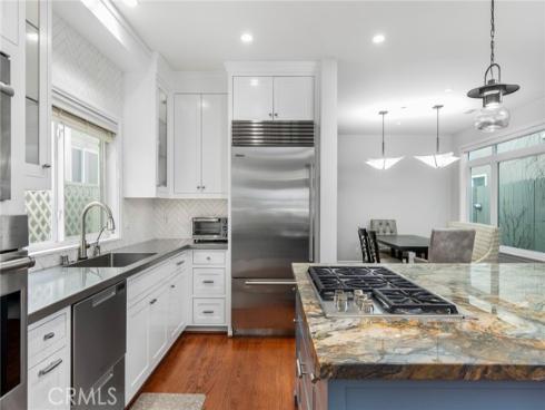 A coastal dream awaits in a meticulously reimagined residence only a quarter of a mile from the sand. Perfectly positioned in the heart of Seal Beach's coveted Old Town, this property offers both coastal tranquility and ease of access, with the storied Main Street just two blocks away and the Electric Avenue Median Park less than a half block’s distance from the home. The open-concept design of the main level encourages a seamless indoor-outdoor lifestyle year round, with an expansive patio playing the perfect backdrop for entertaining or savoring the ocean breeze in solitude. The floor plan offers an easy transition between the living room and the kitchen - the heart of this home and a space that inspires culinary creativity, with a suite of Thermador appliances, plentiful storage, and a striking quartz-topped island. The sophisticated beach charm continues upstairs, where the master suite is a haven with soaring vaulted ceilings, a fireplace, and a serene bathroom. A spacious bonus room with an attached patio is fully wired for surround sound, lending itself well to a movie theater set up or a simple flex space. This is more than a home; it's your all-access pass to the coastal life. With a state-of-the-art Sonos sound system, hardwood flooring throughout, 24-hour security system, and many additional upgrades, this stunning residence is luxury, lifestyle, and location—perfected. Imagine stepping outside your door and feeling the ocean breeze, with breathtaking sunsets and the pristine beach just moments away.