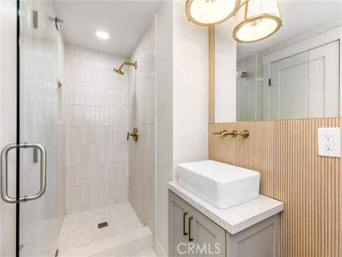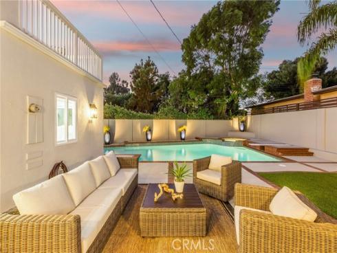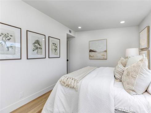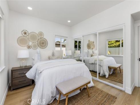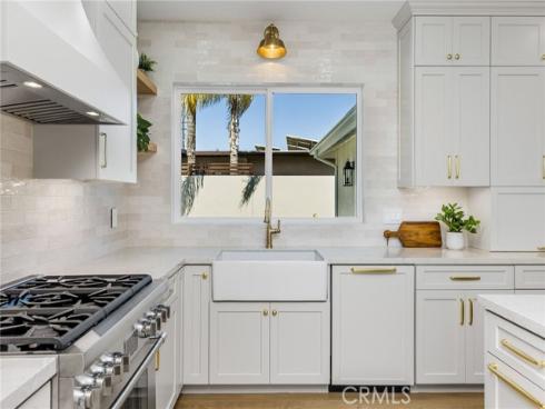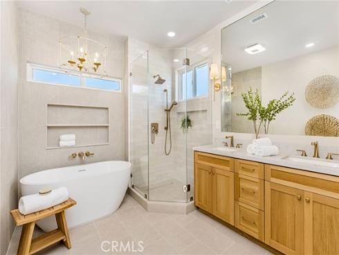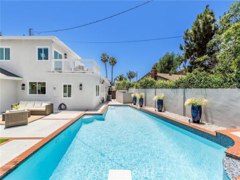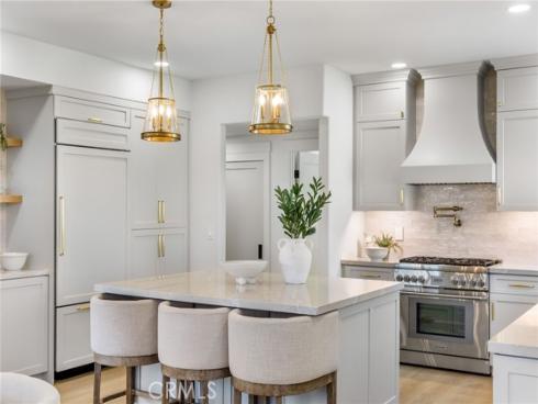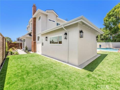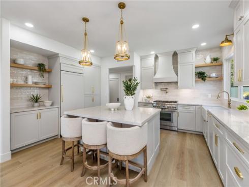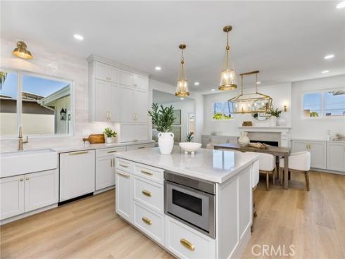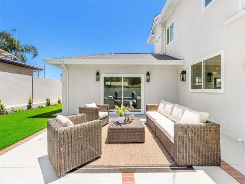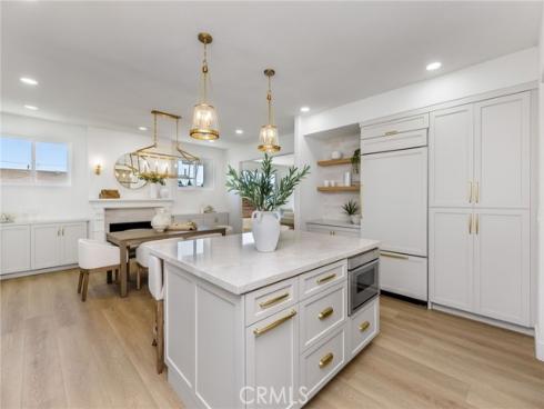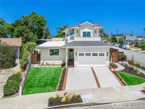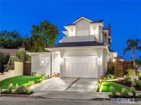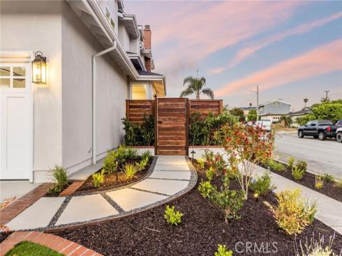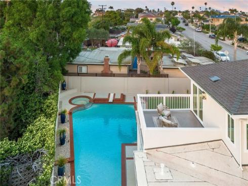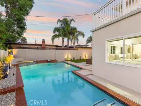 A crown jewel on the Hill! Located on one of the most coveted cul-de-sac streets in Seal Beach’s prestigious Hill neighborhood, this newly recreated custom home is simply exceptional. Set on an oversized corner lot, offering a perfect open layout, bright natural light, and refreshing ocean breezes - this home is amazing with a stellar vibe! Designed by Baytown Design in collaboration with skilled artisans, the heart of the home is the custom-designed kitchen adorned with Harmony Riad countertop-to-ceiling subway tile backsplash, custom-constructed birch wood soft-close cabinetry, under-cabinet lighting, a spacious appliance garage, convenient serving station, and Venus quartz center island. The 36” Thermador range is a chef’s dream, along with the paneled Sub-Zero refrigerator, all complemented by beautiful Brizo fixtures and cabinet hardware by Rejuvenation. A breathtaking custom-built fireplace showcases an elegant wood mantle, a stacked tile firebox surround, and a new gas log set with a remote-controlled gas starter. Three ground floor bedrooms one of which is en suite with its own exterior entrance. The entire upper level of the home is the exquisite owner’s suite, boasting a private sun deck perfect for morning coffee, ample room for a cozy sitting nook, and a 66” maple wood fan. The unforgettable primary bathroom is a sanctuary with a luxurious soaking tub, stylish niches, opulent ceiling-high ribbed limestone walls paired with limestone flooring by Bosphorus Imports, and exquisite Brizo fixtures. The custom-designed walk-in closet includes floor-to-ceiling shelving, built-in drawers, specialized shoe storage, a sitting bench, and other thoughtful elements. Adjacent is a versatile room, ideal for an office or fitness space, leading to a second private deck. The professionally designed and landscaped yard is a spacious wrap-around retreat with an enchanting vibe. Centered around a beautifully replastered 8’ deep pool with a diving board, a graceful spa and mesmerizing waterfall enhance its sparkling waters. Enjoy the elegantly poured stained concrete patios and winding walking paths amid the lush surroundings. Beyond the incredible visible elements, the new features of the home include a 50-year composite shingle roof, a new HVAC system, new Grade A PEX water lines, ABS drain lines plus Noritz tankless water heater, new Milgard Tuscany windows and patio doors, and an epoxy finished two-car garage. No detail has been spared in this custom masterpiece!