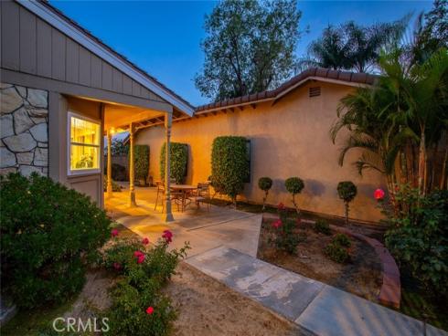 Location, location, location! Located in the “Rancho Dominguez Homes” development this beautiful single story has been well-maintained over the years. Located on a single loaded street with direct access to Dominguez Trailside Park, this home has much to offer! With 3 bedrooms and 2 full baths, this home offers 1,565 SF with an attached 2-car garage and extra-long driveway, great for parking multiple cars. With serene landscaping, the courtyard entry offers lots of privacy with tropical palms, roses, and lush shrubs, perfect for outdoor dining. Many features include gorgeous custom wood + glass front door, wood plank flooring, neutral two-tone interior paint, recessed lighting throughout, dual paned windows, as well as plantation shutters. Kitchen is HUGE! With real wood cabinetry, granite countertops, and granite backsplash, as well as a charming dining nook area. There is a separate dining room that looks over a light and bright courtyard with vinyl lattice patio cover for shade. All rooms are generously sized, while Master Bedroom has mirrored wardrobe closets, as well as direct access to your serene back patio with clear views of Anaheim Hills and City Lights! Master Bathroom has a full tub, full shower and dual sink vanity. The living room entry offers pitched ceilings with granite surround fireplace. BRAND NEW FURNACE AND AC. NEWER DUAL PANED WINDOWS AND SLIDERS. This floorplan is suitable for any type of family offering a great entertaining space both inside and out. The lovely backyard offers a picturesque view AND direct access to Dominguez Trailside Park feeling like it’s your own private park! Just a short two minute drive to Travis Ranch School as well as surrounding shops, horse trails, parks and restaurants, you will love this location in Yorba Linda!
