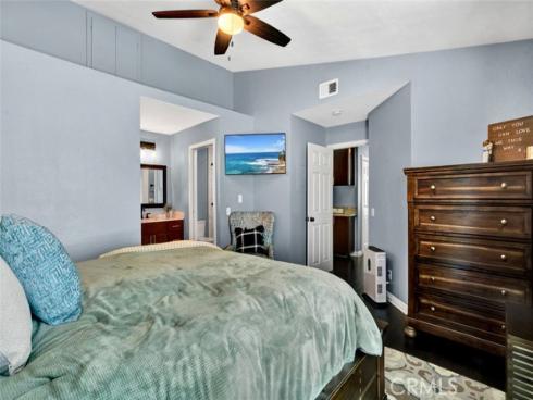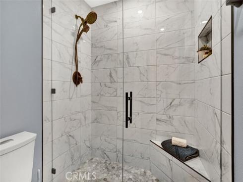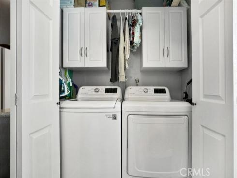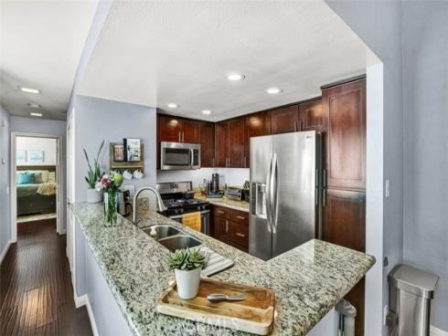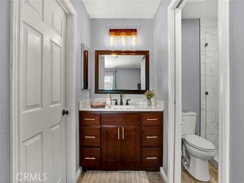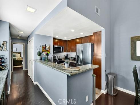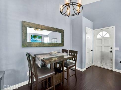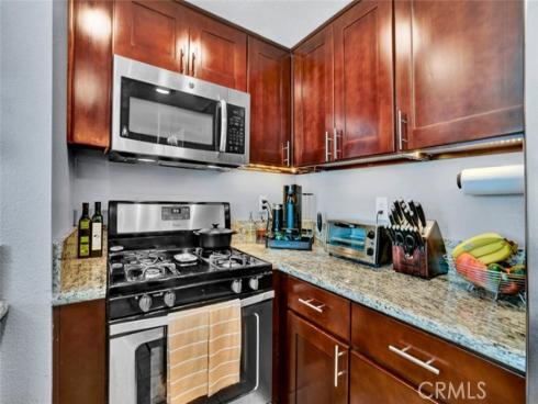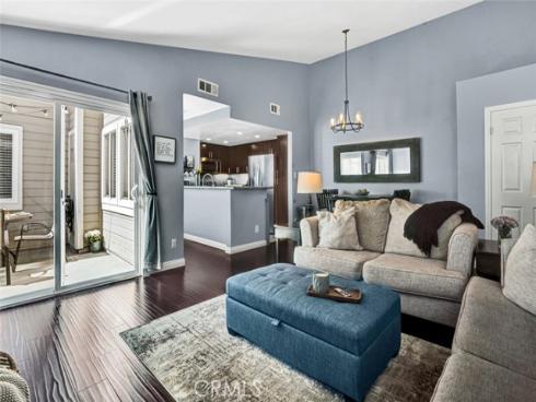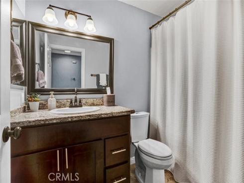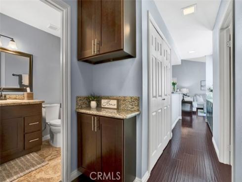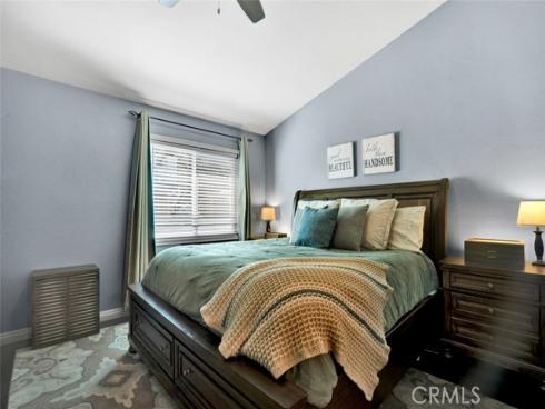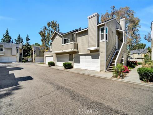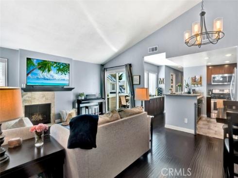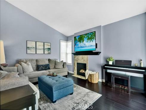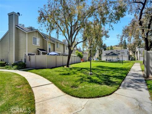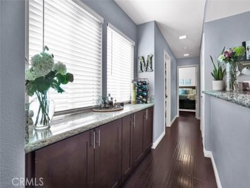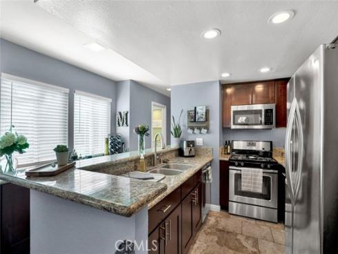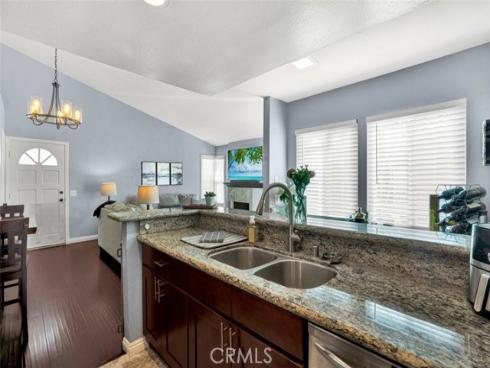 Nestled in the desirable community of Yorba Linda, this charming 2-bedroom, 2-bath end unit offers 1,010 sqft of living space. Host your guests all in one space with this open-concept family room and kitchen overlooking your private enclosed patio. The light and bright family room features vaulted ceiling and custom fireplace with wood mantle. Luxury-style kitchen offers custom cabinetry, recessed lighting, granite countertops, stainless steel appliances and adjacent custom dry bar, perfect for those toasting moments! The ambience of the dining area is set by a stylish chandelier showcasing Edison bulbs. The primary bedroom is light and bright with vaulted ceiling, generously-sized walk-in closet, and fully upgraded en-suite primary bath featuring custom stone tile walk-in shower with bench, recessed lighting, custom vanity with granite countertop, mirror, and upgraded hardware, upgraded lighting, and a custom pocket door for privacy. Designer secondary bedroom features custom built-in shelving, shiplap wall, wainscoting, custom wallpaper, and recessed lighting. The adjacent hall bath also features a custom vanity with granite countertop, mirror, and upgraded hardware as well as upgraded light fixtures. Additional storage in hallway linen cabinets. Two-car garage. Upgrades include Nest thermostat, upgraded double-paned windows and sliding glass door, window casings, hardwood-style and tile flooring, custom paint, tall baseboards, upgraded toilets, whole-house fan by Quiet Cool, and more! Enjoy walks on the greenbelt to the playground, community clubhouse, pool, spa, volleyball court, dog park, and nearby bike trail along the river.